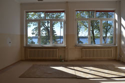 Im September 2015 ist unser Gymnasium in ein neues Schulgebäude umgezogen. Wir haben einen neuen Klassenraum bekommen. Jetzt steht er noch leer, aber das wird sich bald ändern.